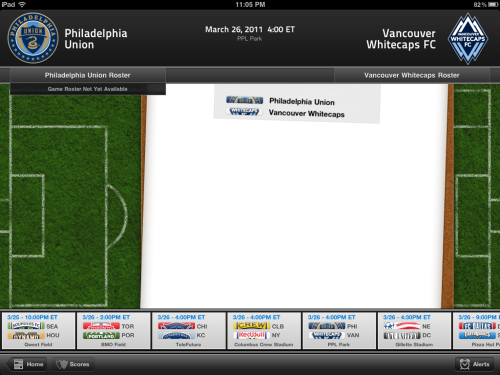 Unfortunately, with the highlights of the app, there seems to be more disappointment. The biggest issue I had was the streaming didn't work. I was out of town trying to watch the opening match and spent $40 for streaming capabilities that were useless. There wasn't an error message or a game blackout indication. It just didn't work. I also have the notification settings on to notify me of any goals, substitutions or penalties and nothing worked. By reading my twitter feed I found out about the goal 10+ minutes after Califf scored. Also, the roster portion of the Union page isn't updated. It's almost a week after the first match and nothing is updated. The "today" portion of the Union page does show that we've won a game and have three points, but the W/T/L icon is still blank in all columns.